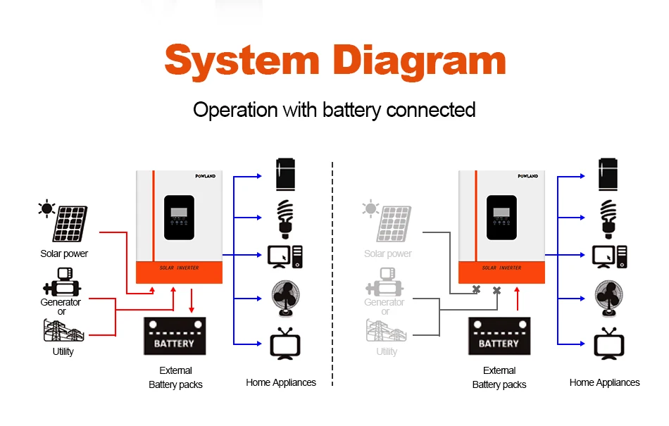 2.Compatible work with lifepo4 battery via Rs485