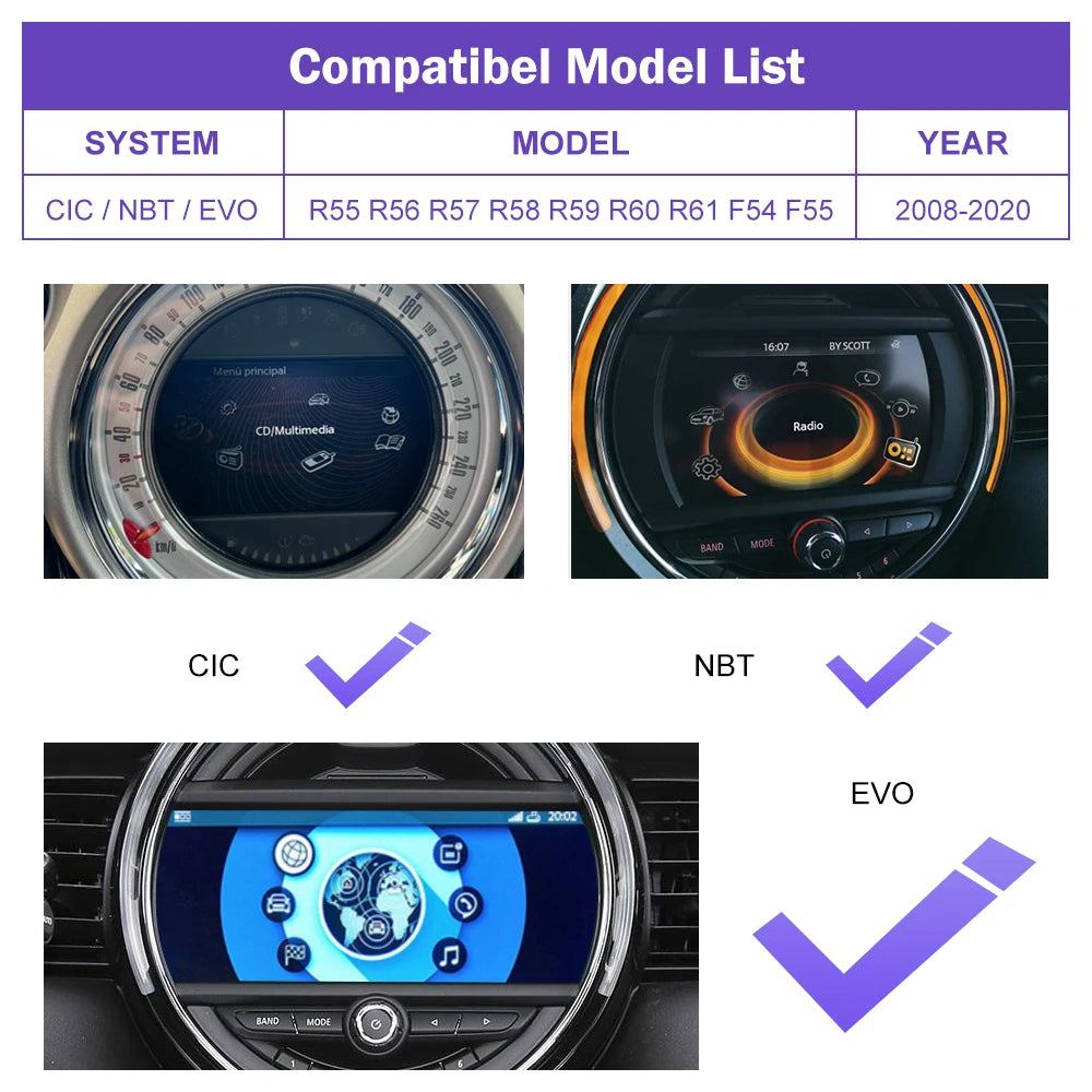 Wireless CarPlay for Mini R55 R56 R57 R58 R59 R60 R61 F54 F55 Clubman Countryman Hardtop John Cooper F56 F57 Android Auto