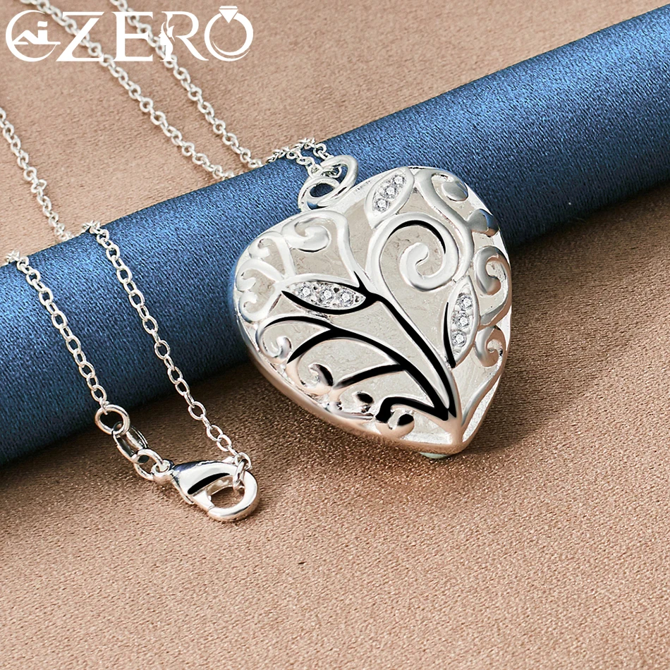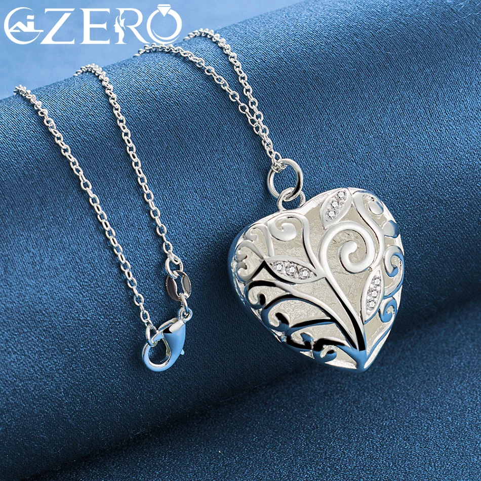 ALIZERO 925 Sterling Silver Hollow Heart AAA Zircon Pendant Necklace 16-30 Inch Chain For Women Wedding Engagement Party Jewelry