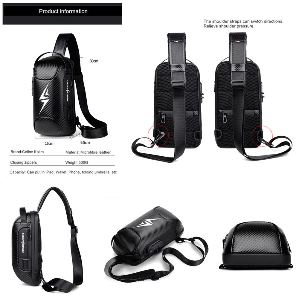 Celinv Koilm Brand Men Bag Woven Leather Sling Chest Crossbody Bag For Man Moto Biker Shoulder Bags Black New Fashion Hot Sale