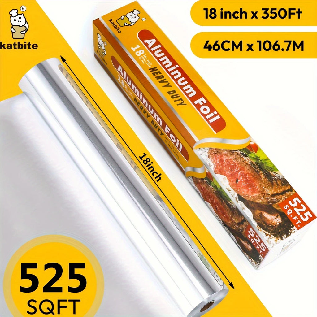 Katbite Aluminum Foil Heavy Duty 18 Inch Wide, 25 Micron Thick Strong Heavy Duty Foil Aluminum Roll Wrap For Commercial Catering, Grilling, Roasting, Baking, Home Cooking, 18inx350ft, 525 Sqft Full Sheet Baking Pan Liners