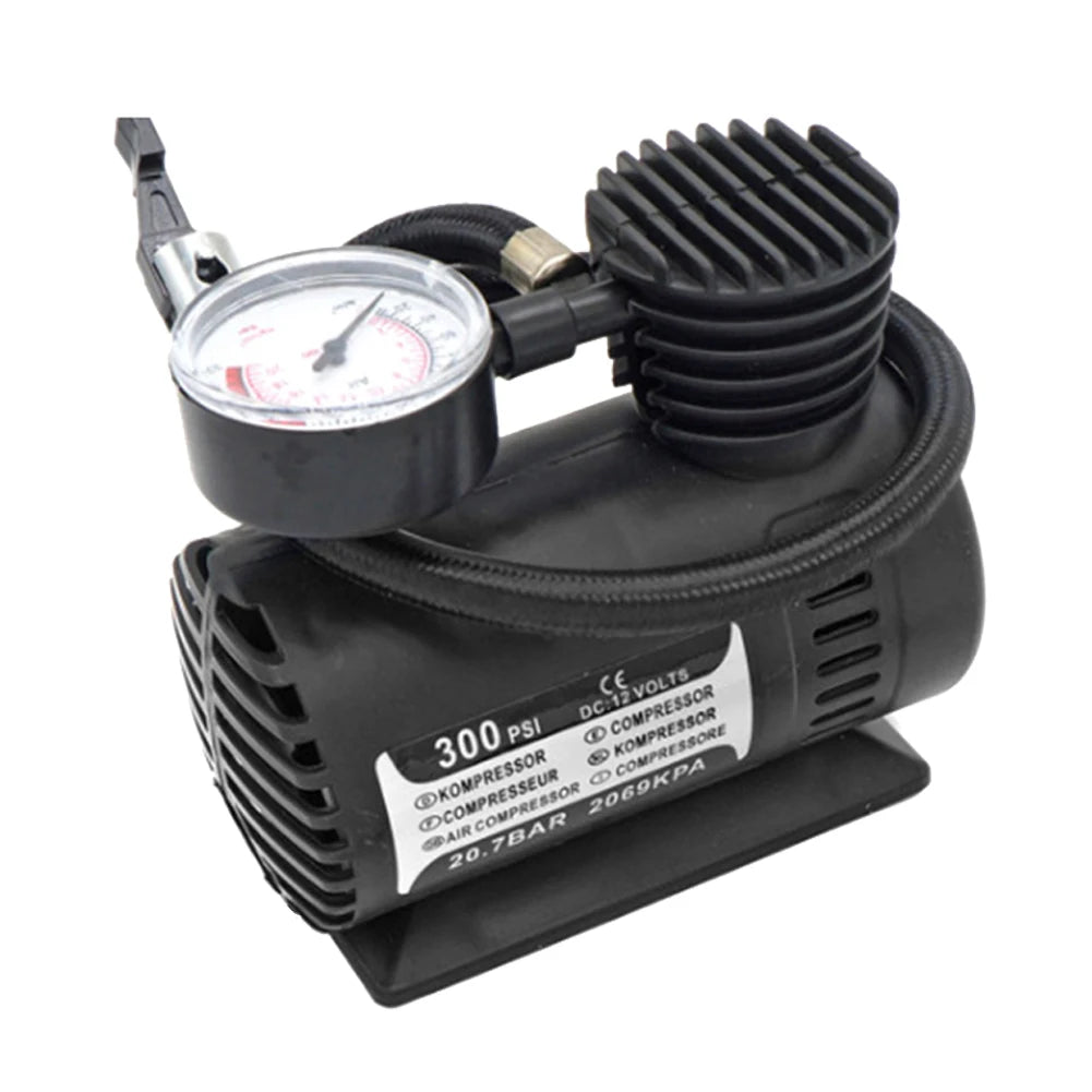 12V 300PSI Mini Air Compressor with Gauge Auto Inflatable Pump High Precision Heavy Duty Tire Inflator Electric Compact Air Pump