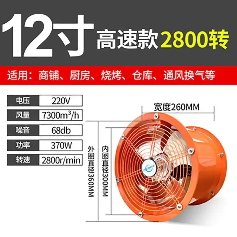 10/12/14/16inch Round speed kitchen exhaust fan Strong cylinder duct fan Silent axial flow industrial exhaust fan High power