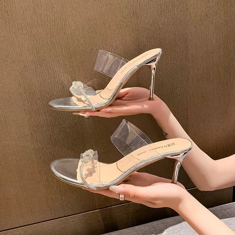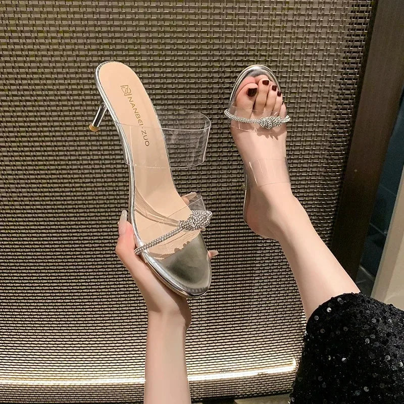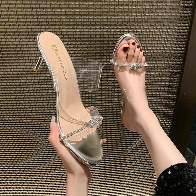 2024 Women Sandals Sexy Crystal Gladiator Sandals Ankle Strap High Heels Hollow Out Party Shoes Closed Toe Stiletto Ladies Pumps