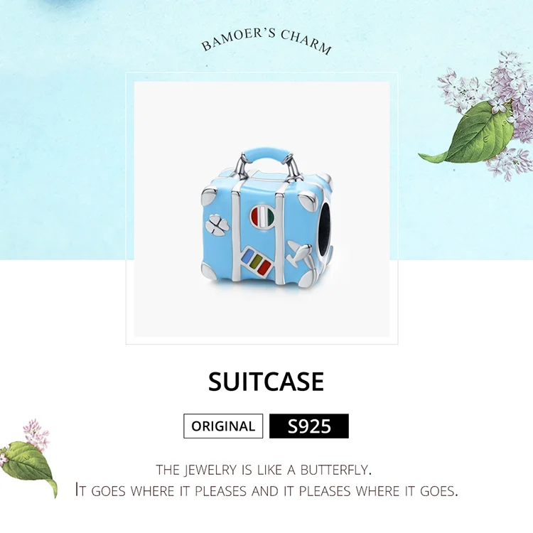 bamoer 925 Sterling Silver Blue Enamel Suitcase Metal Bead fit Women Jewelry Making Original Silver Bracelet DIY Jewelry SCC1377