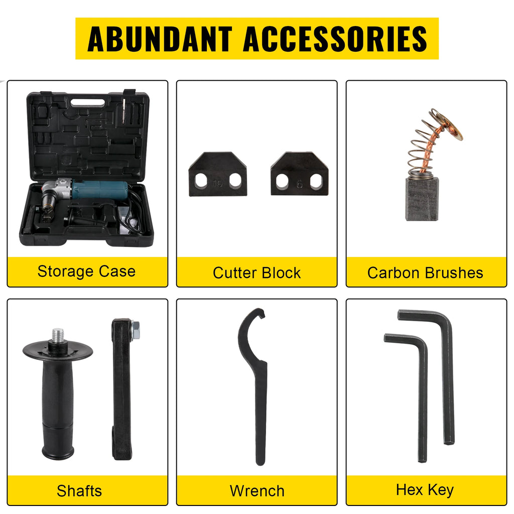 This 625W electric metal nibbler features a 360-degree die rotation, enabling precise and clean cuts through steel, aluminum, plastic, and other metals. Its ergonomic and compact design ensures a comfortable grip and easy maneuverability, making it lightweight and user-friendly. The tool also offers quick die and punch changes, minimizing downtime and boosting productivity.
