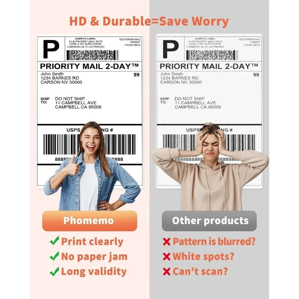 Phomemo thermal labels perfectly compatible with JADENS, Nelko, MUNBYN, ASPRINK, OMEZIZY, Chengjing, Rollo, iDRPT, ITARI, Zebra, LabelRange, K COMER, vretti, Rongta, Polono, Jiose, OFFNOVA, NefLaca, MFLABEL, Arkscan, BESTEASY, Phomemo and other direct thermal printers. (Not Compatible With Dymo or Brother).Specifications: