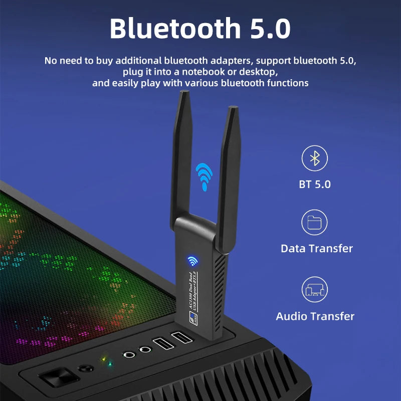 1300Mbps USB 3.0 Wireless Network Card Bluetooth 5.0 WIFI 6 Adapter 5dBi Dual Band 2.4G 5G USB 3.0 Lan Ethernet Adapter for PC