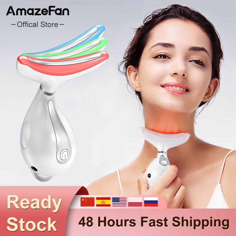 AmazeFan Facial Neck Massager 3 Colors Led Photon Therapy lifting Wrinkle Removal Beauty Device Reduce Double Chin Skin CareTool