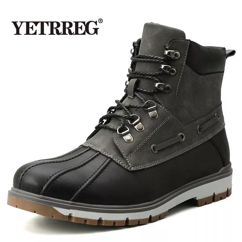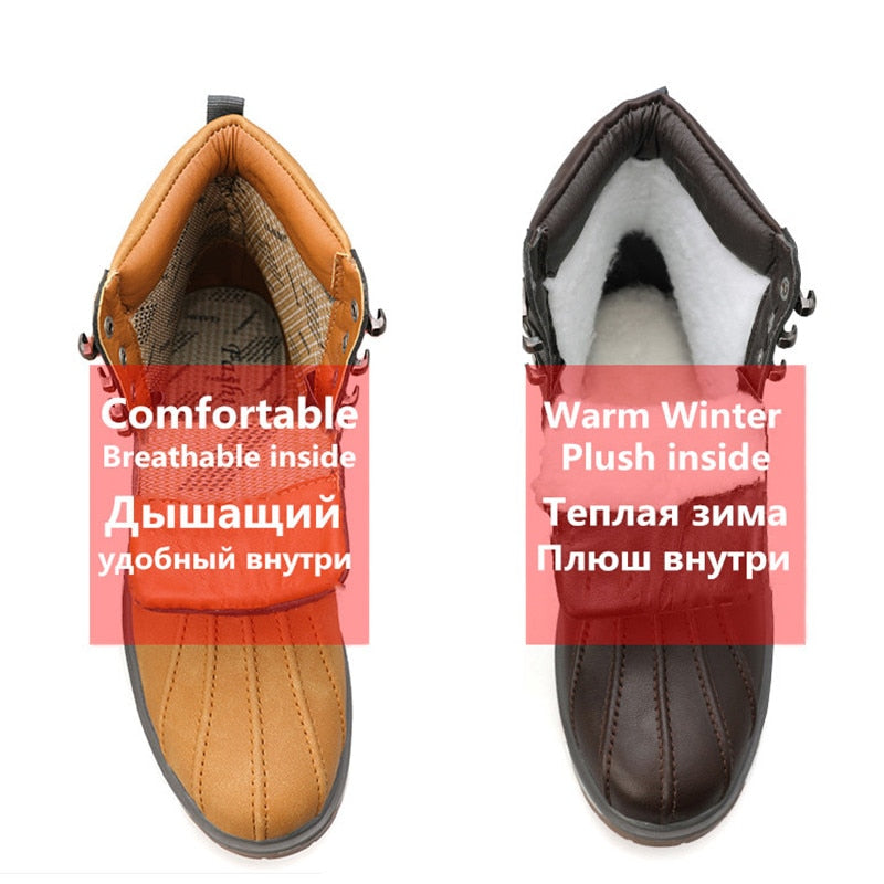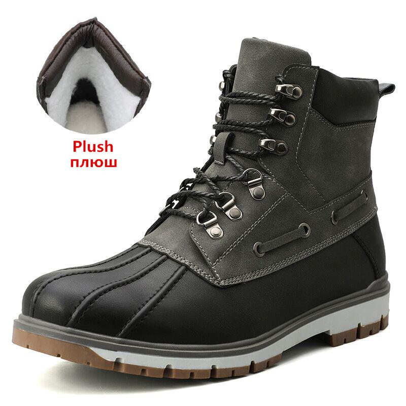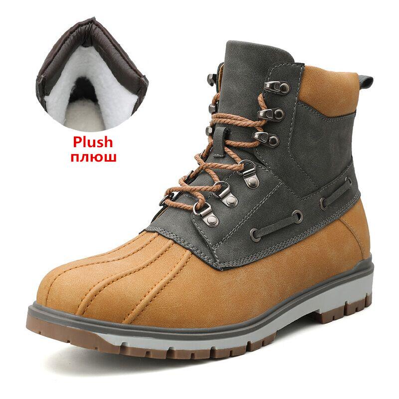 Brand Winter Men's Boots Thick Plush Warm Snow Boots Lace-UP Men Ankle Boots Outdoor Waterproof Men's Motorcycle Boots 38-47