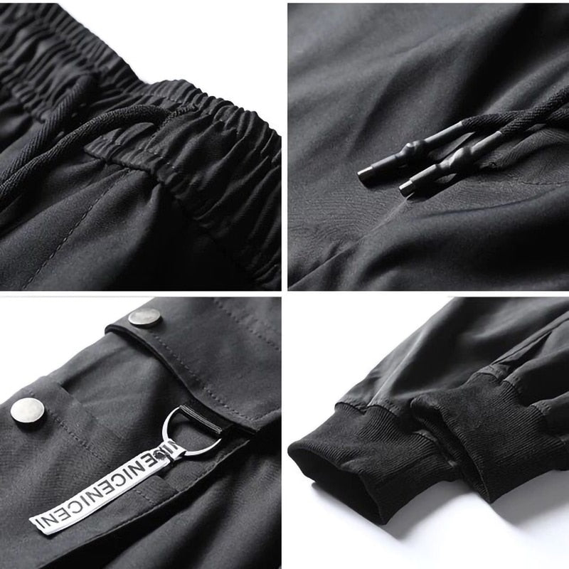Cargo Pants Men Solid Color Black Loose Casual Jogger Pocket Elastic waist Ankle Length Trousers Techwear