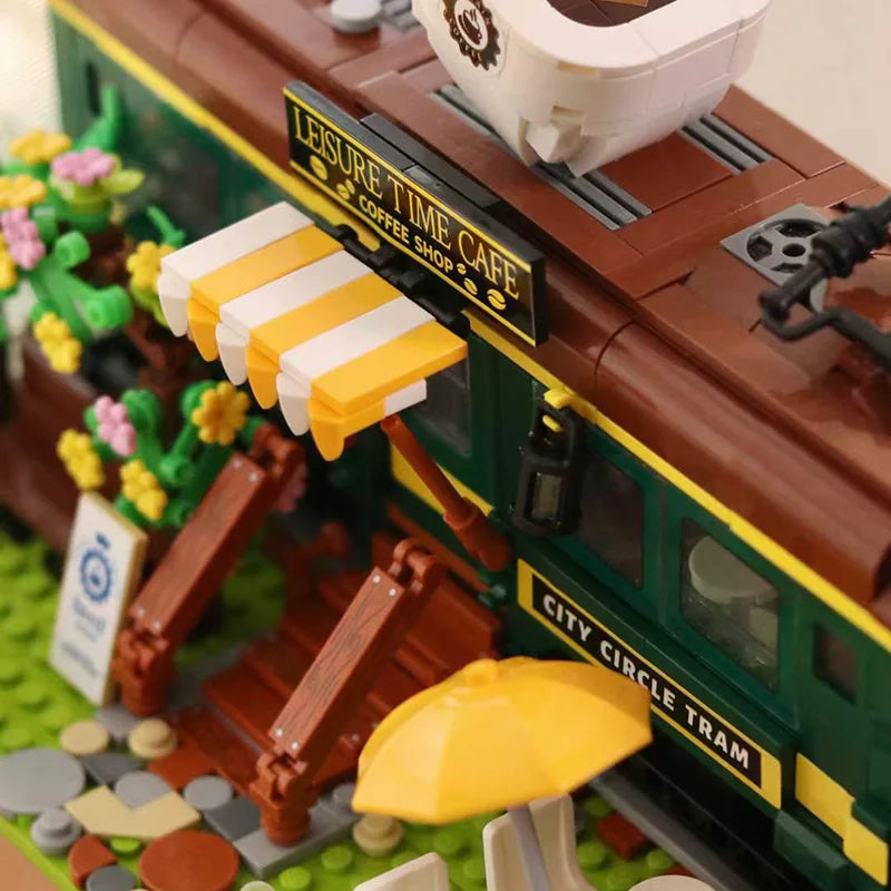 Creative Retro Train Coffee Shop Mini Size Building Blocks City Street View Train Coffee House Bricks Toys Gifts For Children