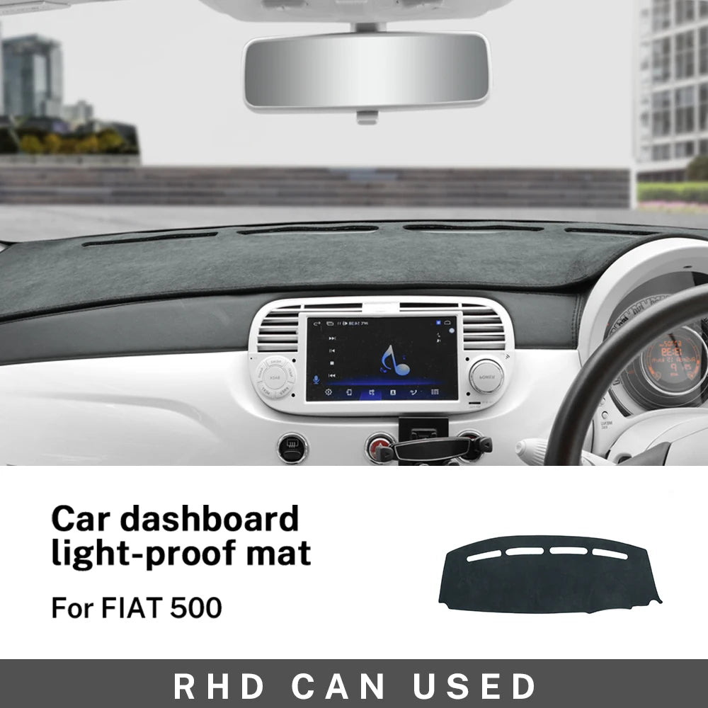 Flannel Dashmat For Fiat 500 2008-2011 Abarth 595 2012 2013 2014 2015 2016 2017 2018 2019 2020 2021-2023 Sunshade Mat Carpet Pad