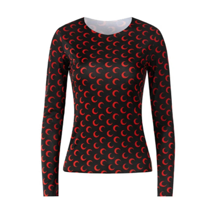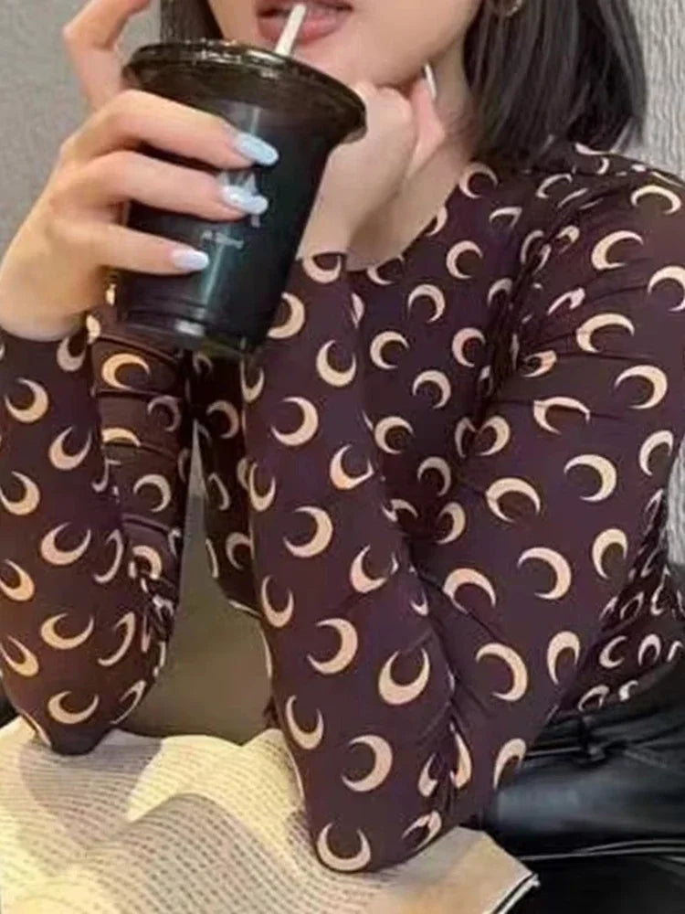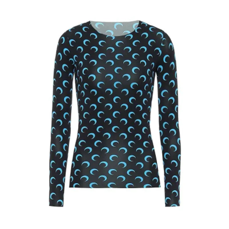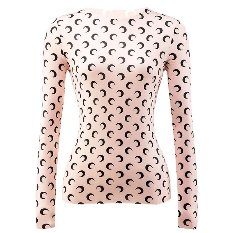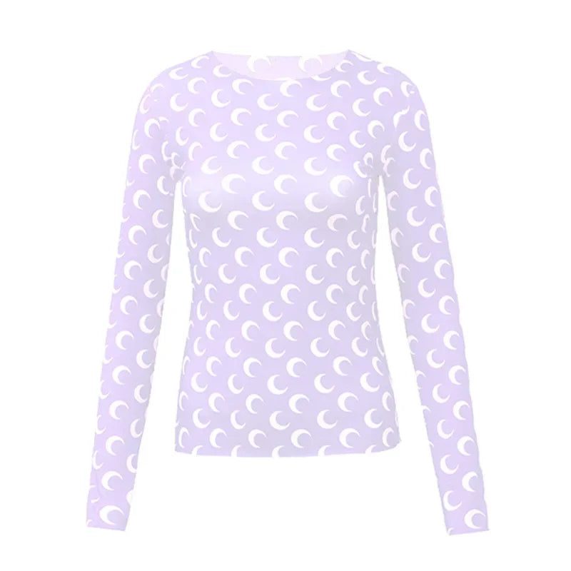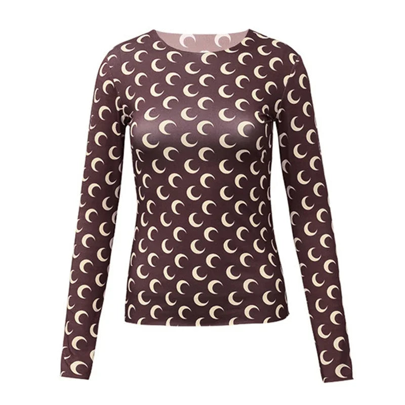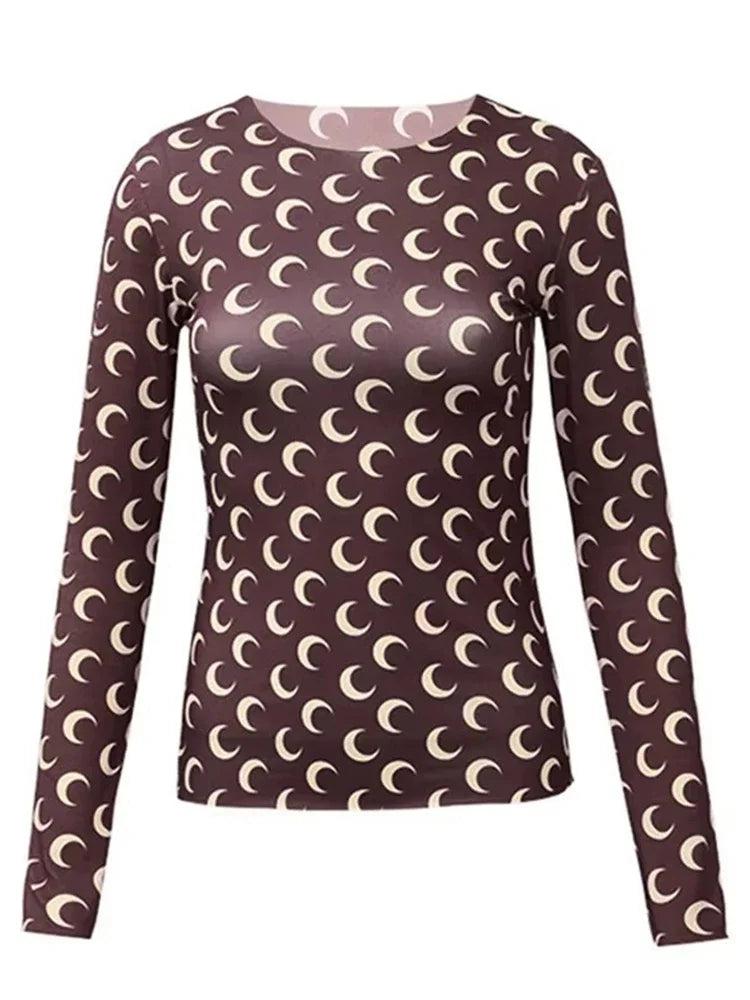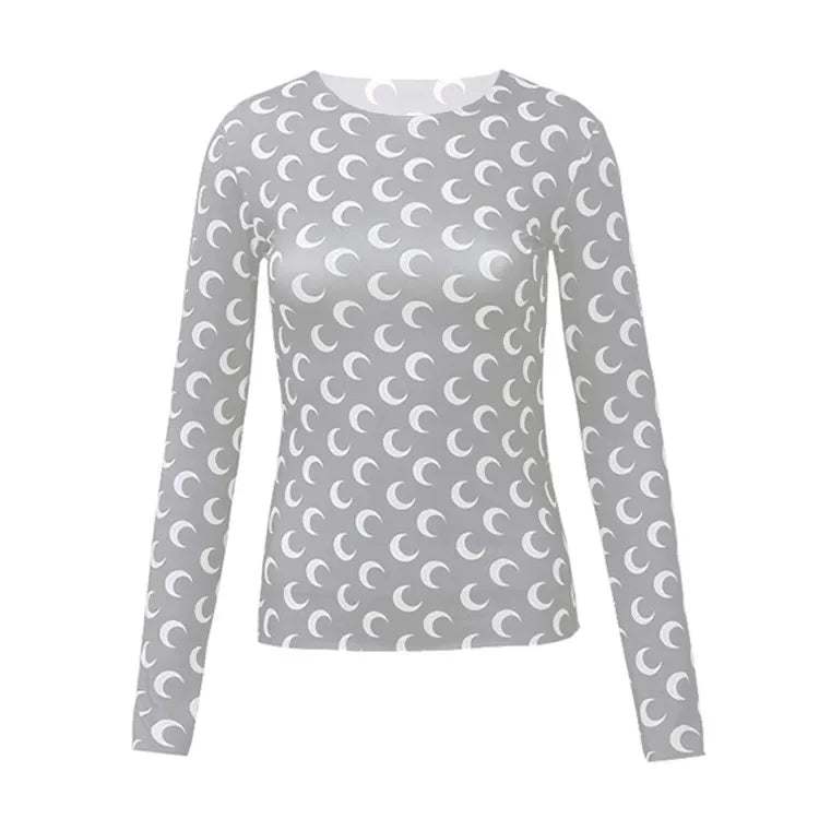 New Printed Mesh Women Base Shirt Autumn Fashion Casual Long Sleeved Sun Protection Ice Silk Inner Layer Women\'s T-Shirt