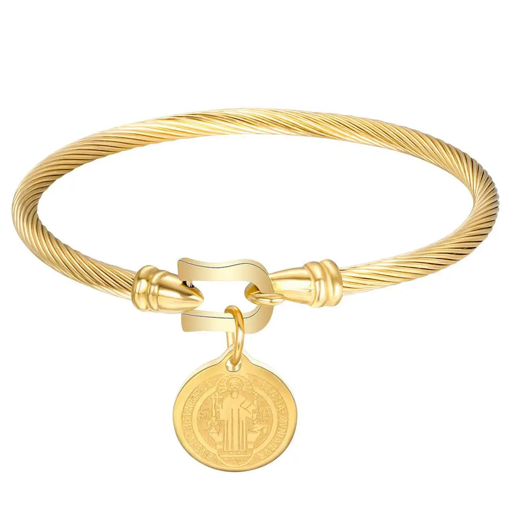 Stainless Steel Jesus San Benito Wire Bangles Saint Benedict Medals Charm Bracelet For Women Religious Jewelry Gift