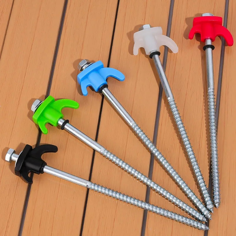 Durable Carbon Steel Material: Our hexagonal spiral tent nails are made of durable carbon steel, providing a sturdy and reliable anchor for your tent or waterproof cloth. The strength of steel ensures that your camping equipment is securely fixed in place.