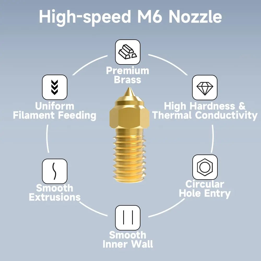 - 【Quality Material】Creality Ender 3 V3 SE Nozzle is made of high quality brass with excellent thermal conductivity. Higher hardness and more wear-resistant than ordinary nozzles. It is easy to print high temperature consumables, and more materials can be printed at will.