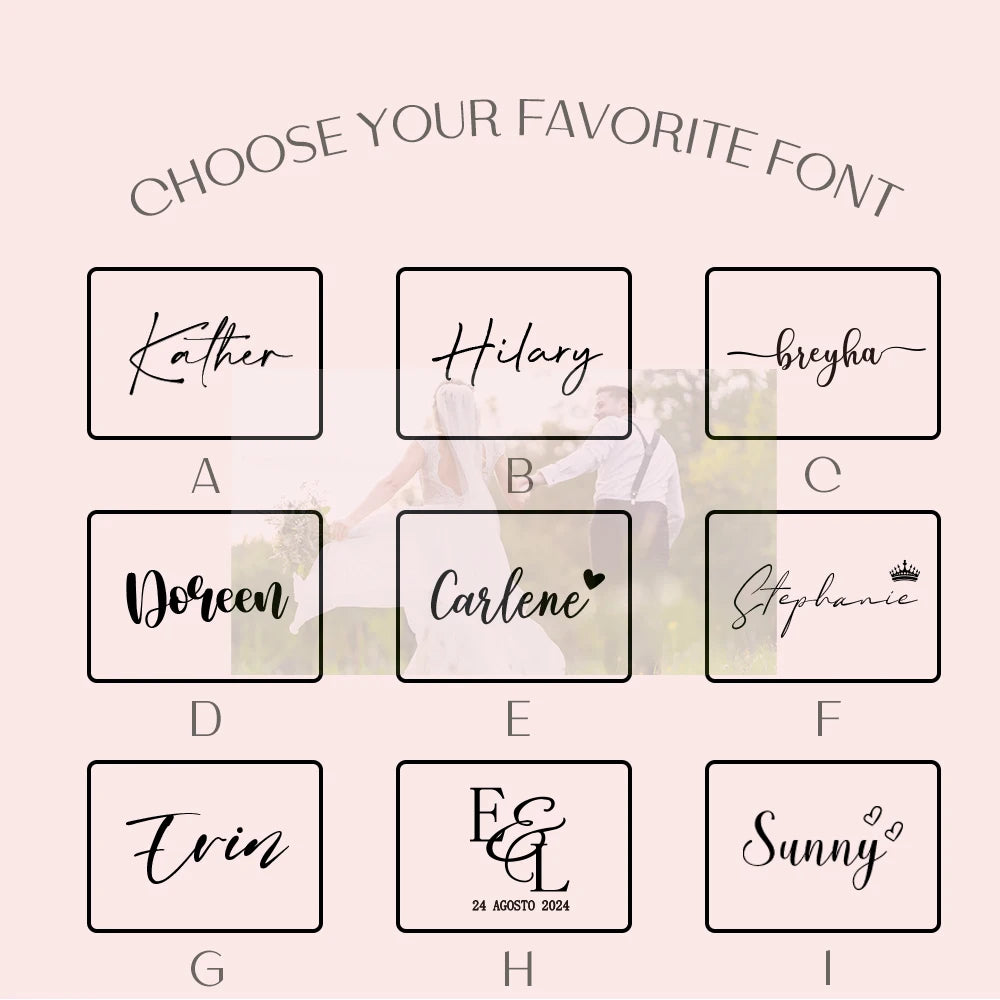 ◆Leave the content you need to customize and your font option. (e.g.Name+Font Option ). If no font is put in the notes, we will make your bag using A1.