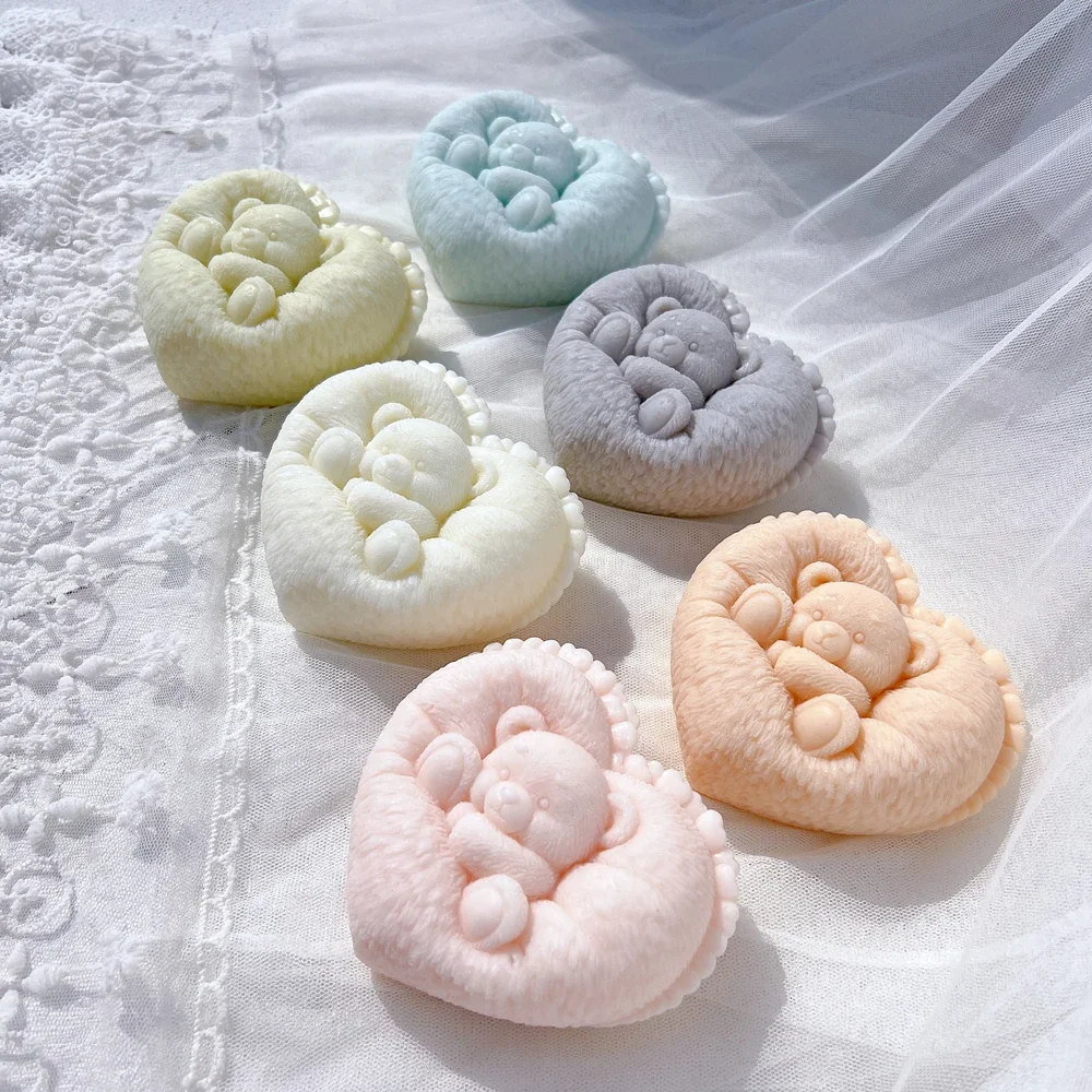 Product Name: Sleeping Bear in Heart Shape Candle Mold