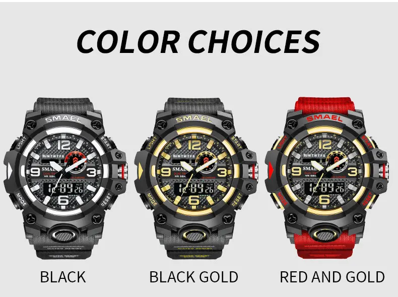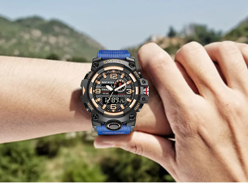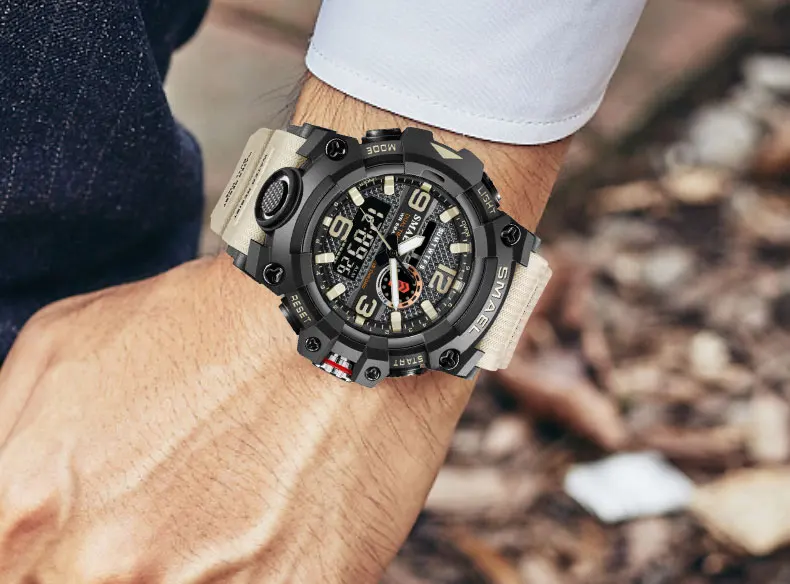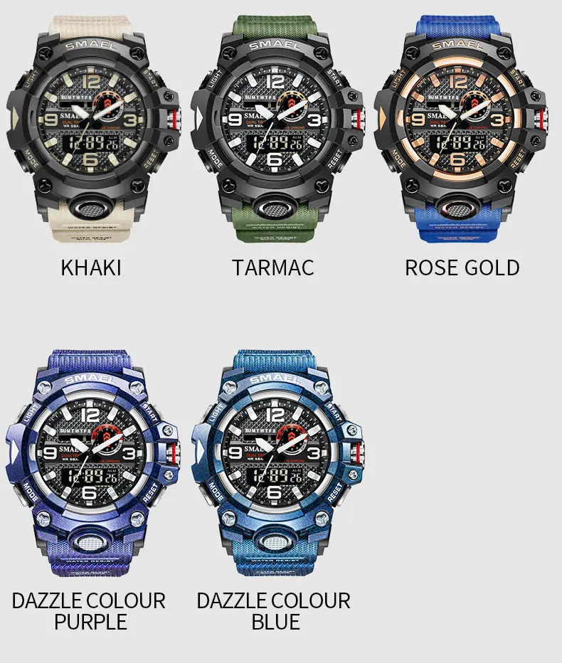 SMAEL Men Sport Watches Dual Time Digital Watch Quartz 50m Waterproof Watch Led Military Watch Sport 8035 Men Watches Wristwatch