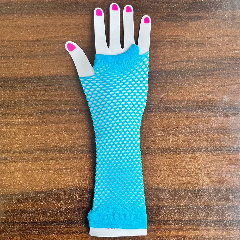 1 Pair Sexy Women Party Neon Fishnet Fingerless Long Gloves Sun Protection Sleeves Mesh Lace Thin Gloves Summer Arm Warmer