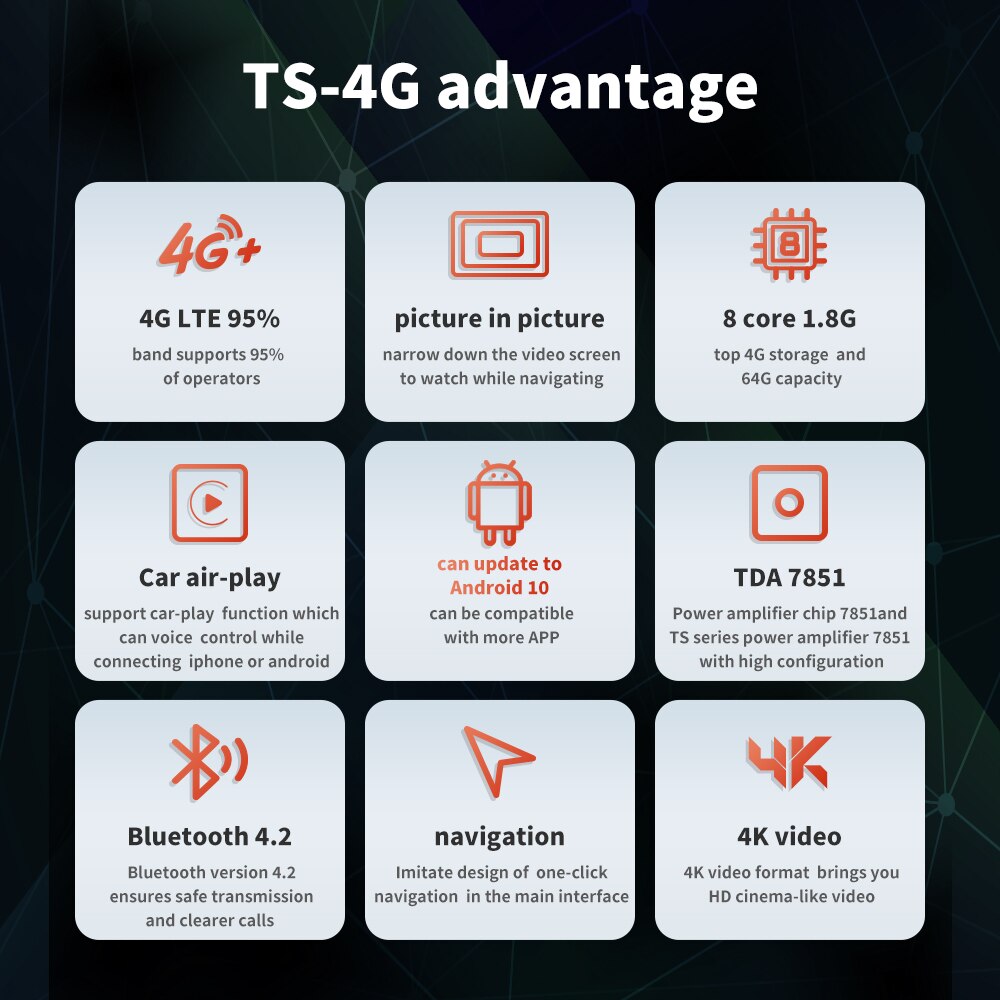 Special Feature: Built-In Speaker/Microphone,Wifi Function,Support Steering Wheel Control,Support 4G Network,Support Can-Bus
