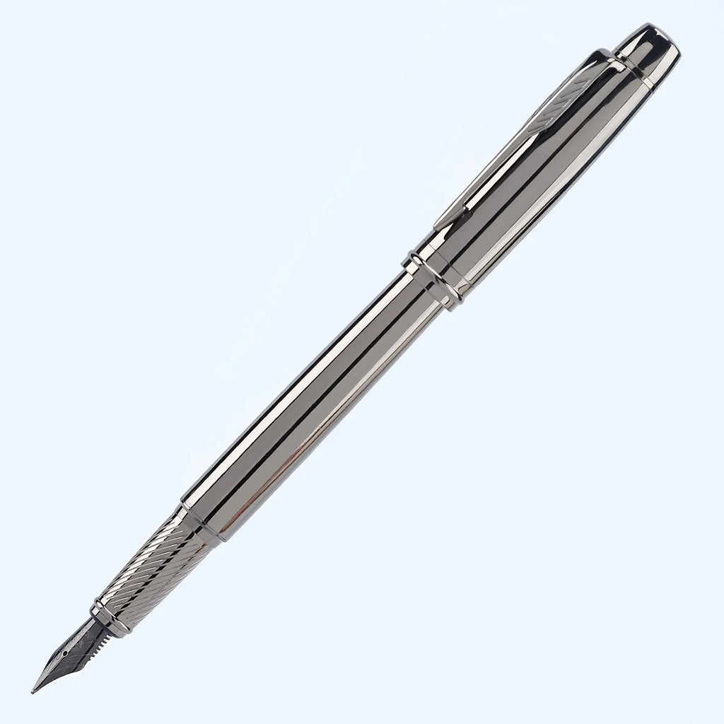 1 piece, silver gray high-end business metal pen, Iridium pen tip medium size 0.5mm, the best fountain pen for men and women in office school students, with ink converter, without ink, suitable for 3.4 caliber ink bladder