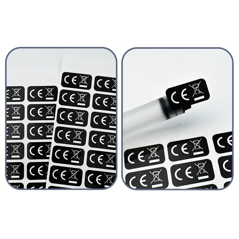 Europe Union Standard CE Trash Bin Label WEEE Recycling Logo Transparent Self-adhesive CE Sticker 200pcs