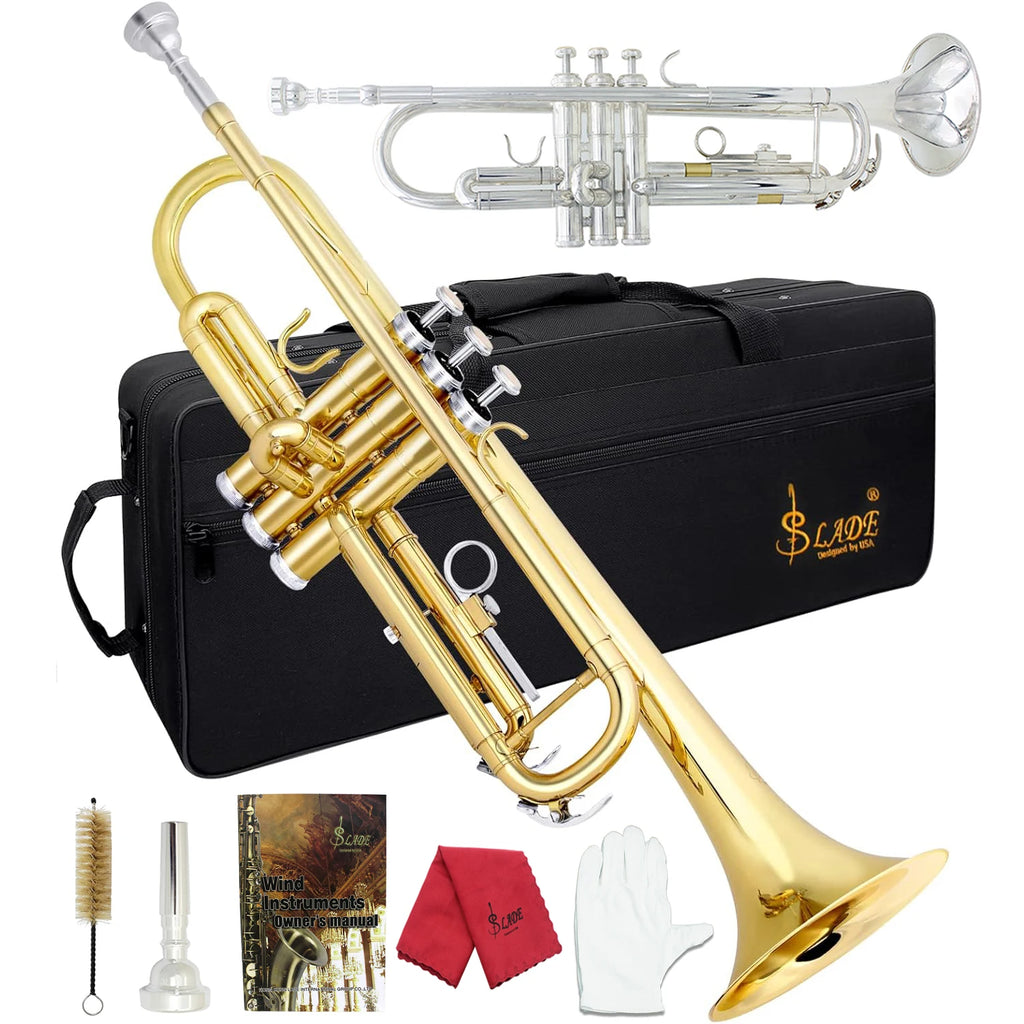 SLADE Bb Trumpet Brass Instrument Standard Brass Trumpet Set for Students Beginners Professional Trumpet Gold Silver with Box