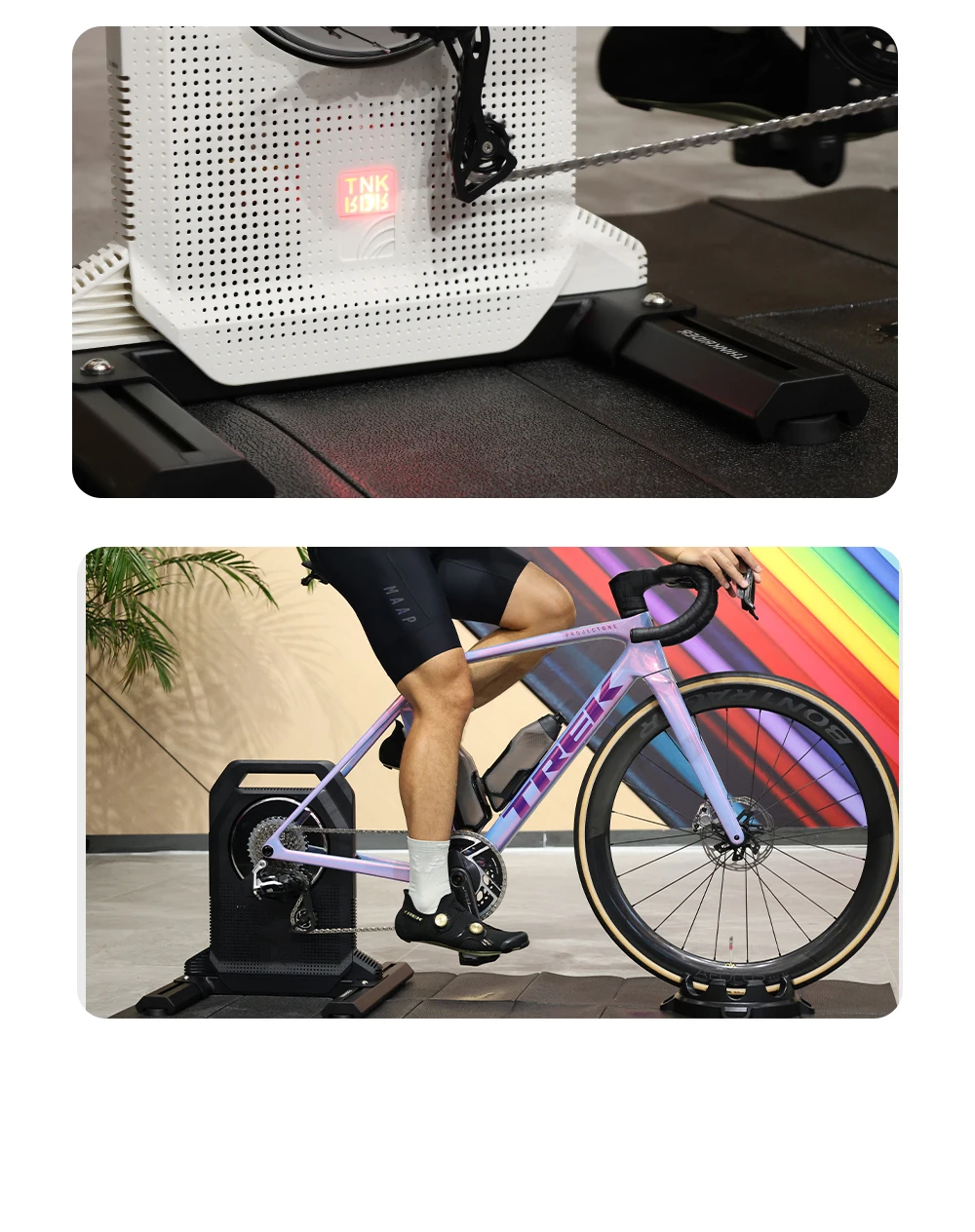 ThinkRider's newly designed white cyclingplatform is perfect in every detail.
