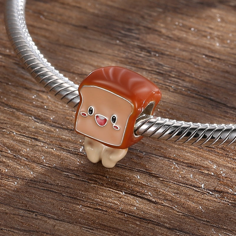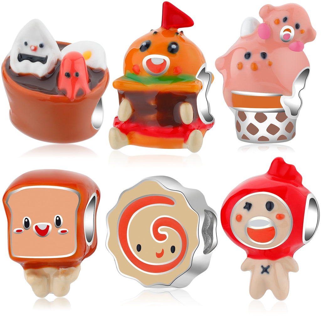 Silver 925 Desserts Delicious Lovely Food Series Charms Pendant Hamburger Egg Bead Charms Jewelry Making Fit DIY Silver Bracelet