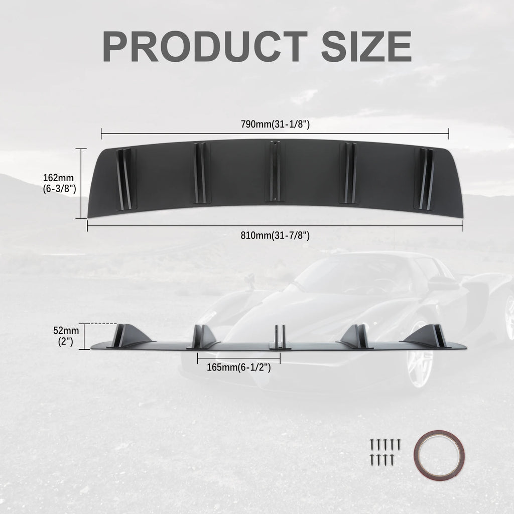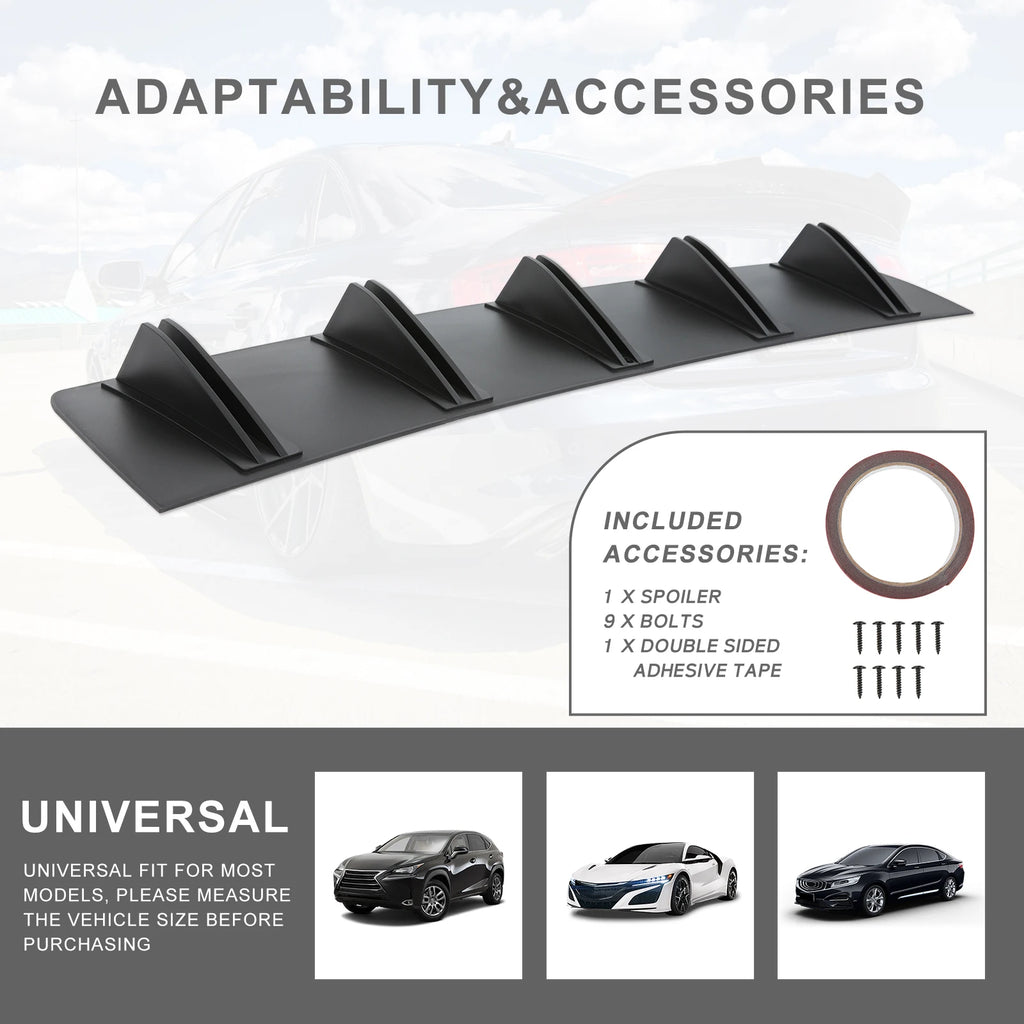Universal 5 Fin Spoiler Modification Kit Car Rear Bumper Lip ABS Rear Shark Chassis Fin Style Curved Bumper Lip Diffuser