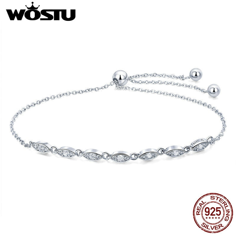 WOSTU Hot Sale 925 Sterling Silver Chain Glitter Stackable Oval CZ Stone Adjustable Women Bracelet Luxury Silver Jewelry CQB086