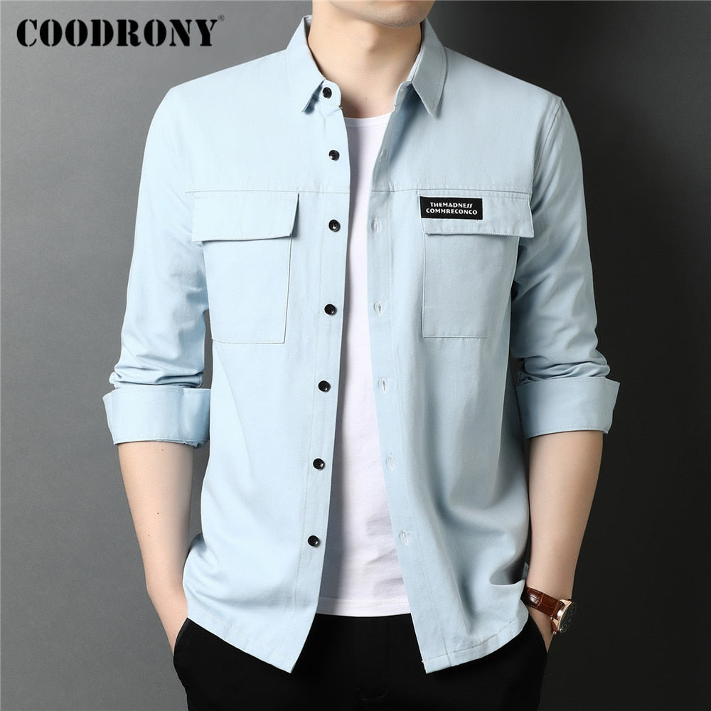 COODRONY Brand Spring Autumn High Quality Streetwear Fashion Style Big Pocket 100% Cotton Long Sleeve Shirt Men Clothing C6112