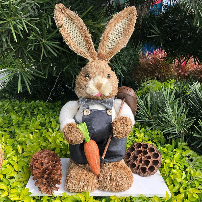 Easter Bunny Rabbit Straw Figures Decoration 35cm Easter Straw Easter Rabbit Bunny Figurine Home Garden Wedding Ornament