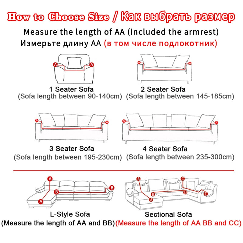 4-seatersofa slipcover fits most sofas up to back length 235 to 300cm/ 92 to 118 Inch.