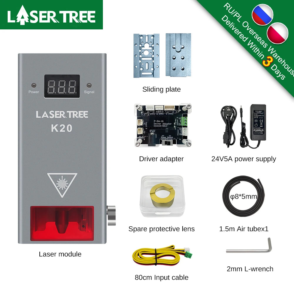 LASER TREE 20W 10W 5W Optical Power Laser Head 450nm Blue Light TTL Laser Module For CNC Engraver Wood Cutting DIY Tools