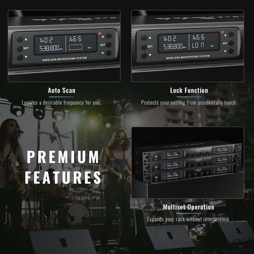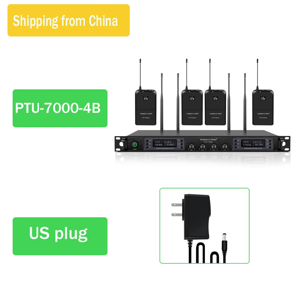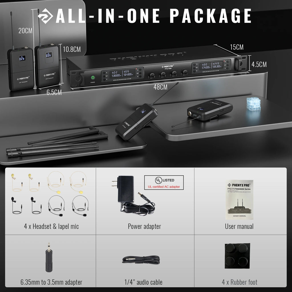 Phenyx Pro 4x40 Channels Wireless Microphone System Cordless Mic Set Auto Scan 328ft/m Coverage for DJ, Church,Events PTU-7000