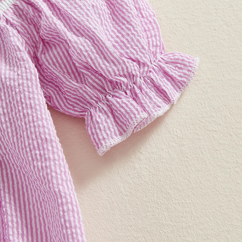 Baby Girls Rompers Easter Clothes Rabbit Embroidery Stripe Short Sleeve Summer Bodysuits JumpsuitsSize (cm)