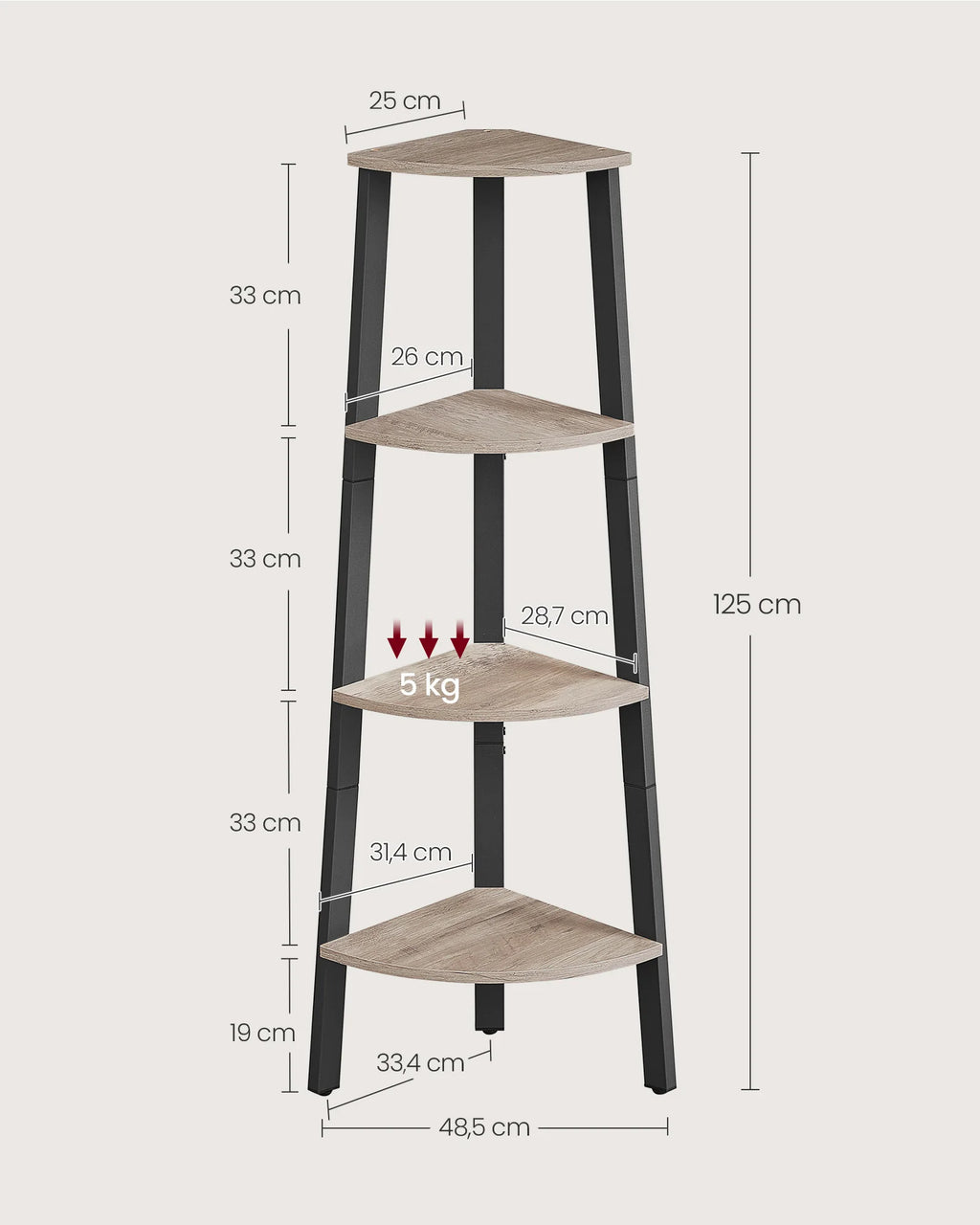 VASAGLE Corner Shelf Unit, 4-Tier Corner Shelf, Ladder Shelf for Living Room, Bookshelf or Plant Stand, Industrial Accent
