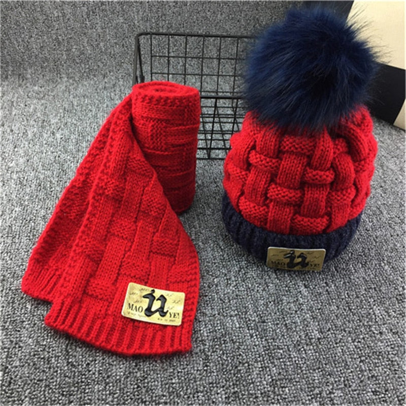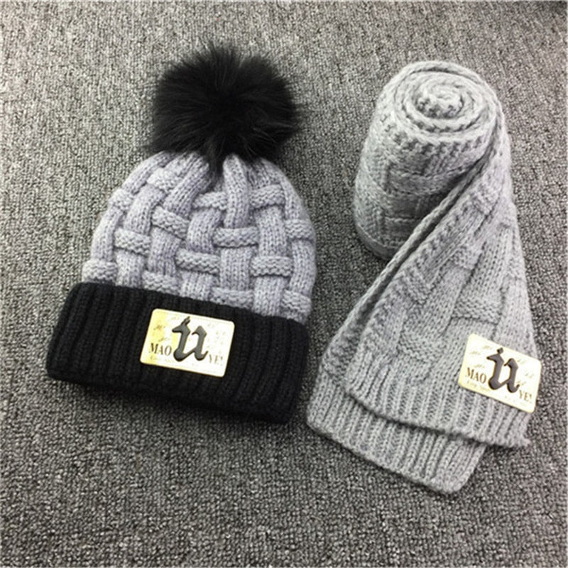 Winter Soft Fleece Knit Hat Scarf Set Kids Novelty Thickened Beanie Scarf with PU Patches