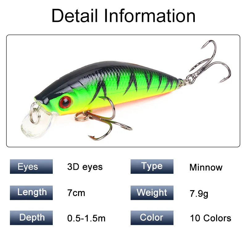 1Pc Minnow Fishing Lure Swim Hard Fishing Bait 7cm 8.5g Artificial Bait Wobbler Crankbait Carp Bass Fishing Tackle
