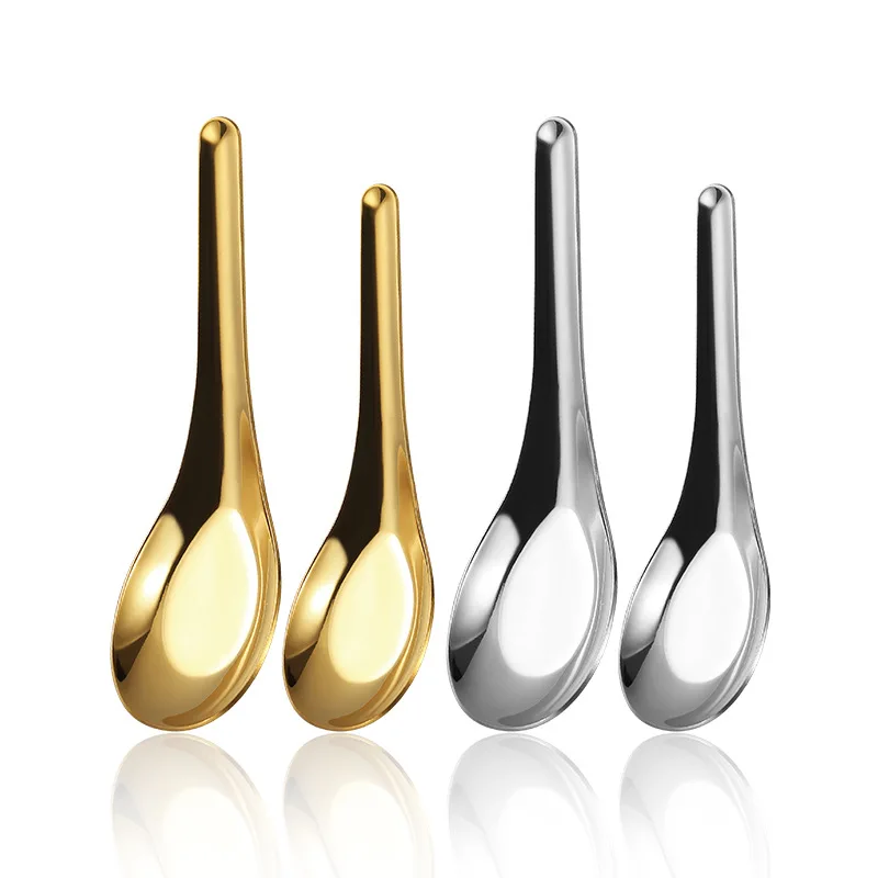 304 Stainless Steel Flat Bottom Rice Soup Spoon Silver Golden Mirror Polished Tableware Household rice spoon Kitchen supplies