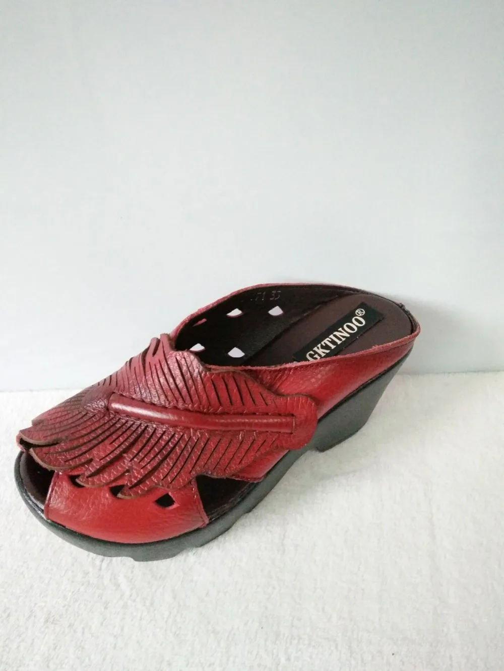 GKTINOO New Ethnic Style Genuine Leather Women Shoes Sandals wedges Slides Handmade Flower Women Summer Slipper