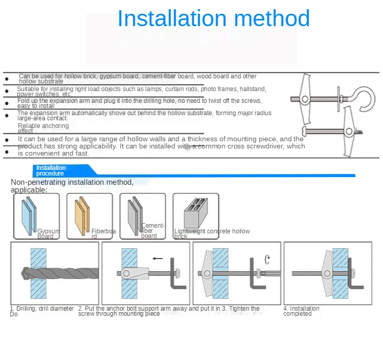 2-10Pcs M4 M5 M6 M8 M10 Plasterboard hollow wall cavity wall fixing spring toggle anchor