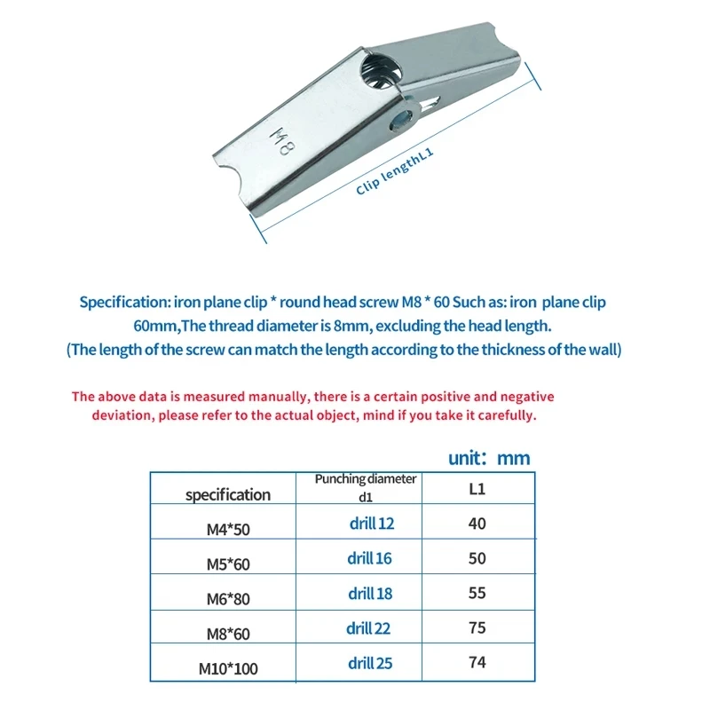 2-10pcs Metal Spring toggle Wing Toggle Anchor M4 M5 M6 M8 M10 Plasterboard hollow wall cavity fixing bolt Hardware Fasteners