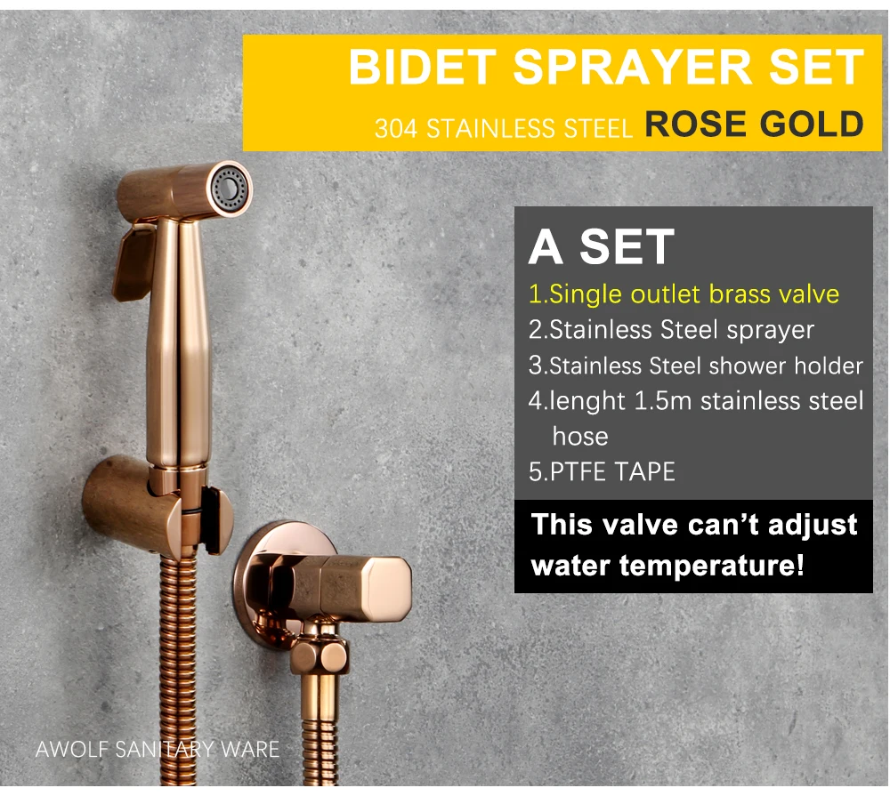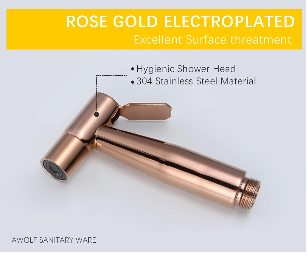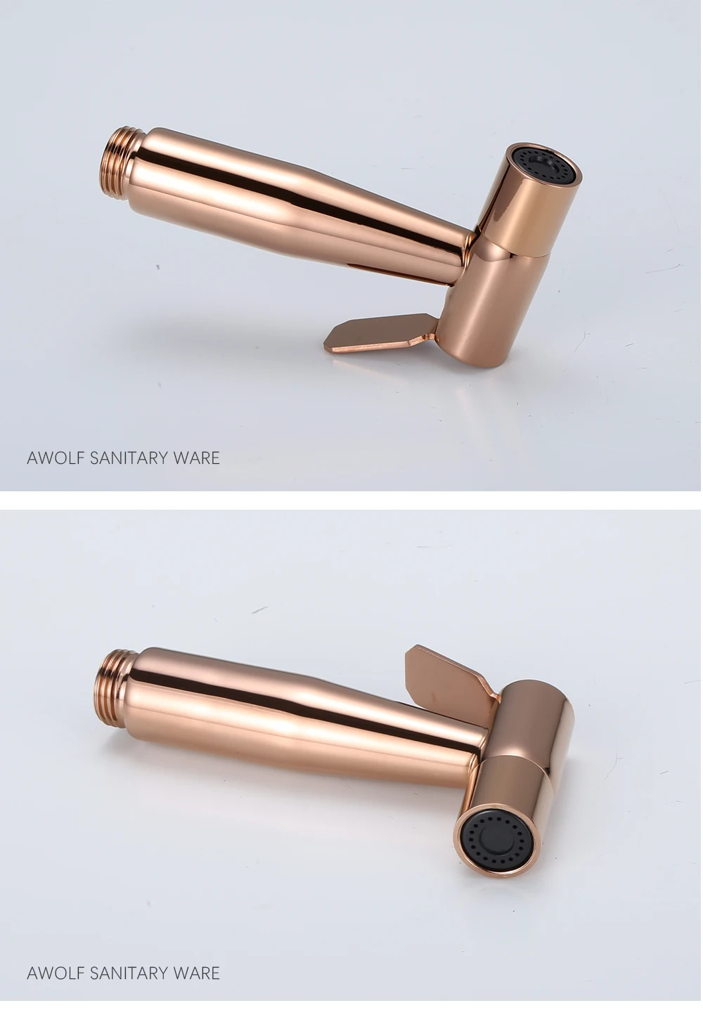 Awolf Rose Gold Hygienic Shower Head Handheld Toilet Bidet Sprayer Set Stainless Steel Shattaf Brass Valve Anal Shower System AP2102