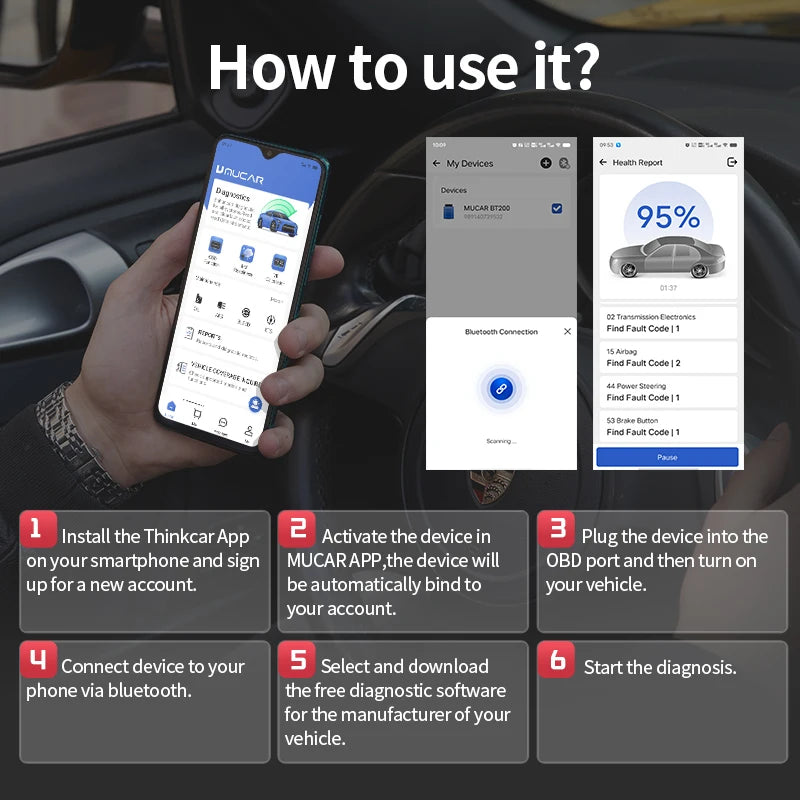 MUCAR BT200 Pro OBD2 Diagnostic Tool is suitable for Mobile phones,tablet computer that meet the above version information.When the adapter is connected to the car,you only need to detect and diagnose your vehicle through the mobile phone's Bluetooth 4.2 and APP.It is suitable for most DIY car owners and maintenance and repair car stores on the market.