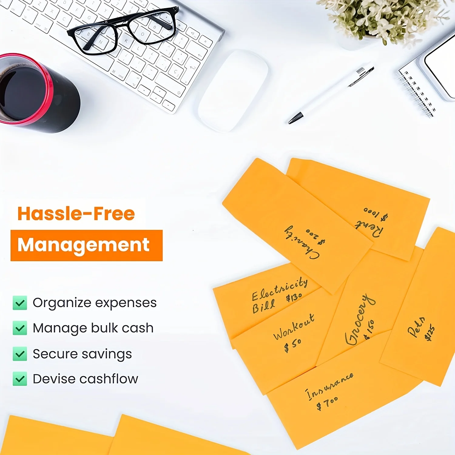Cash Envelopes, 3.5X6.7 Inches - 80 GSM Brown Kraft Paper, Peel and Seal Cash Envelopes for Cash Savings and Budgeting