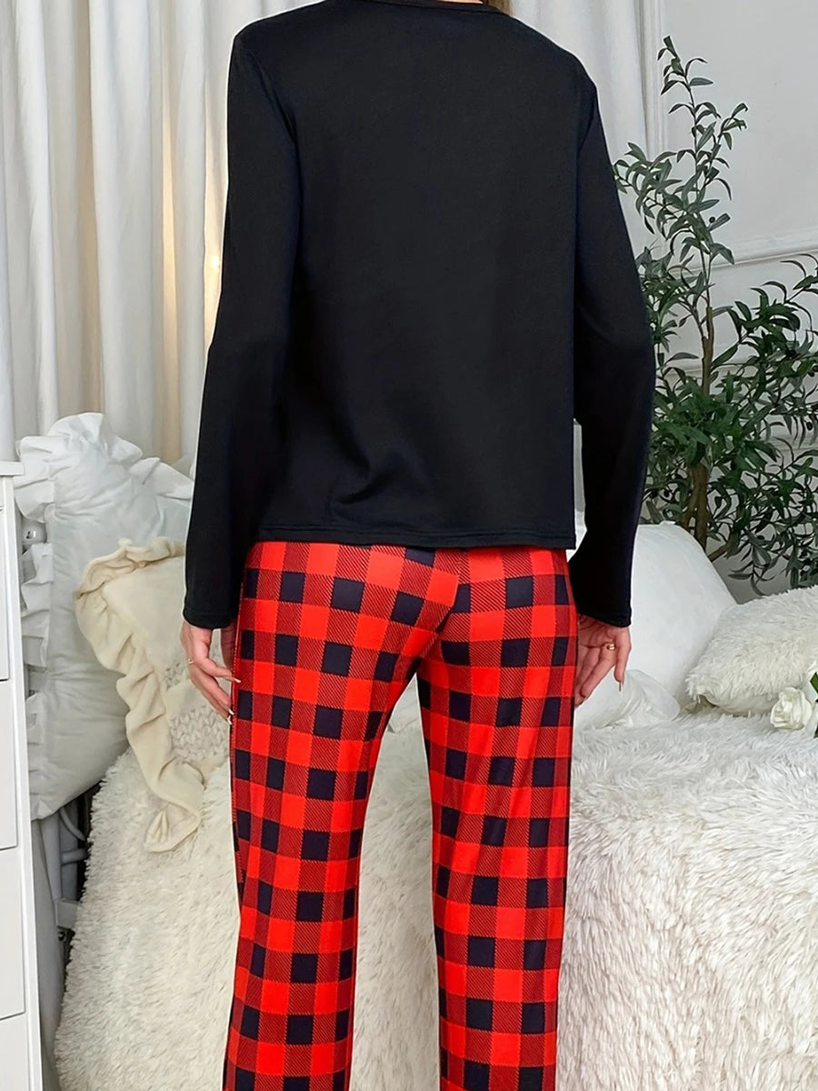 Women s Christmas Pajama Set with Festive Print Long Sleeve Top and Cozy Plaid Pants - Holiday Loungewear Ensemble
